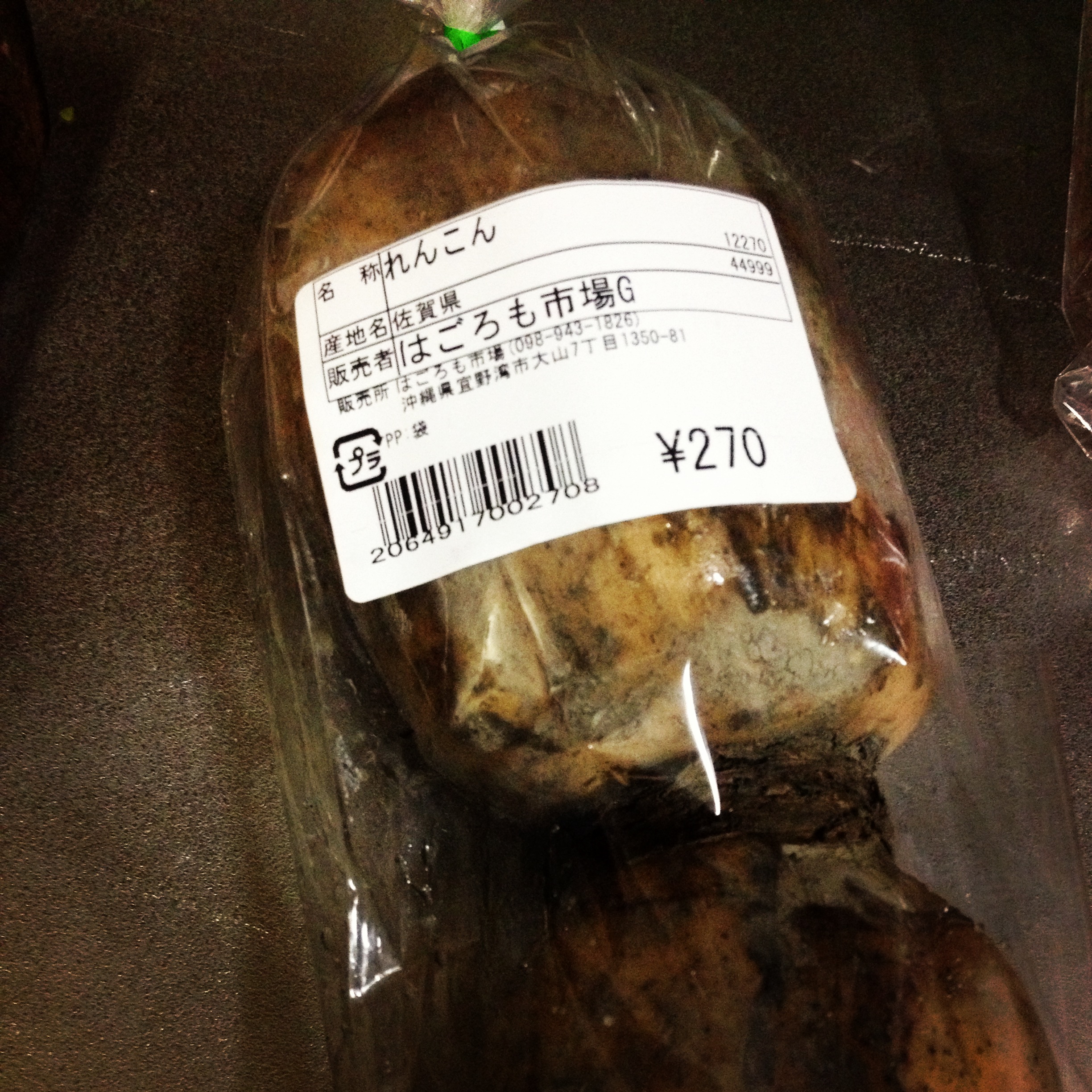 I picked up some Okinawan spinach, or handama, this week. Handama has a beautiful purple color on one side the leaf. It can be eaten raw or cooked. It’s got a pleasant and mild taste. I also found fresh lotus root, known as renkon in Japanese. It’s easy to find packaged renkon in the local Japanese stores, but this is the first time I’ve been able to use it fresh. It’s cooling and great for the liver.