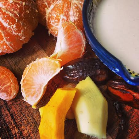 To be clear, this is a dessert, and probably the best fruit smoothie that I’ve ever had. It’s bright, warming, and comforting. The tiny specs of vanilla bean warm my heart and I’m pretty sure that I’m in love.