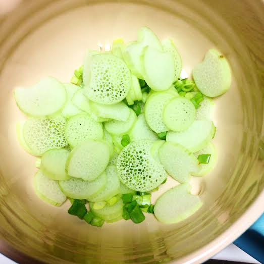 Using a whisk, mix the milk kefir or yogurt with all of the spices until well combined. Stir in the green onion and lotus slices. This needs 30 minutes to an hour for the flavors to mingle and get to know one other. Let it sit in the refrigerator while you prepare your main course.